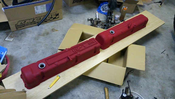 まず、L型エンジンのヘッドカバーを赤い結晶塗装やってみました。
