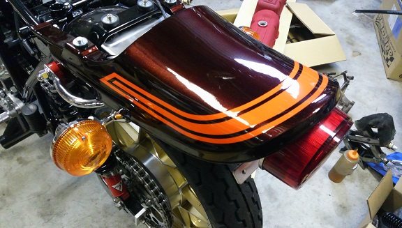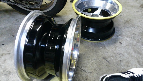 補修は、ホイール自体からエアー漏れするので裏側を塗装して穴埋め作戦に出ます。