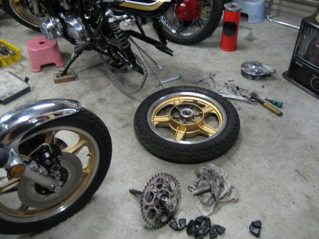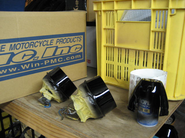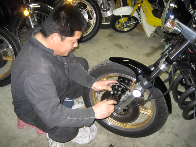 2月24日(土)今日はメンバーの東○が持って来た、セブンの羽の塗装準備と、副リーダーのフロントブレーキ(マスター・ホース・パッド)の交換予定。