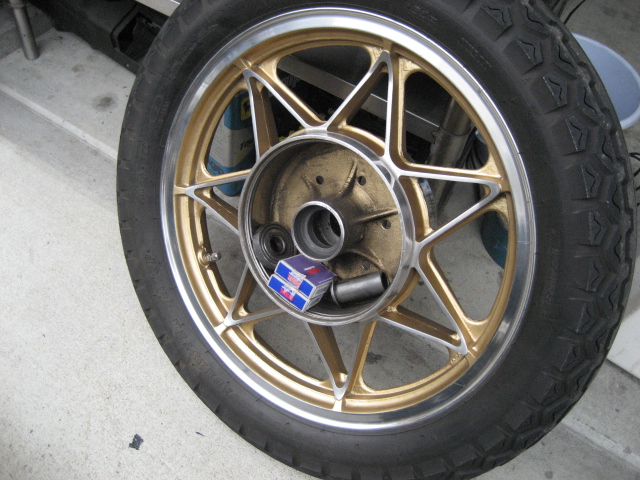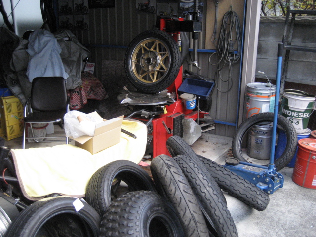 (可愛そうに、これからハードな仕打ちに合うのも知らずに履きかえさされるTT100! 頑張って支えてやってくれよ!特攻隊長は、最近のタイヤは絶対滑らないと信じきっている。<滑る時は滑る!!> もー歳ですから、控えめに!<笑>)