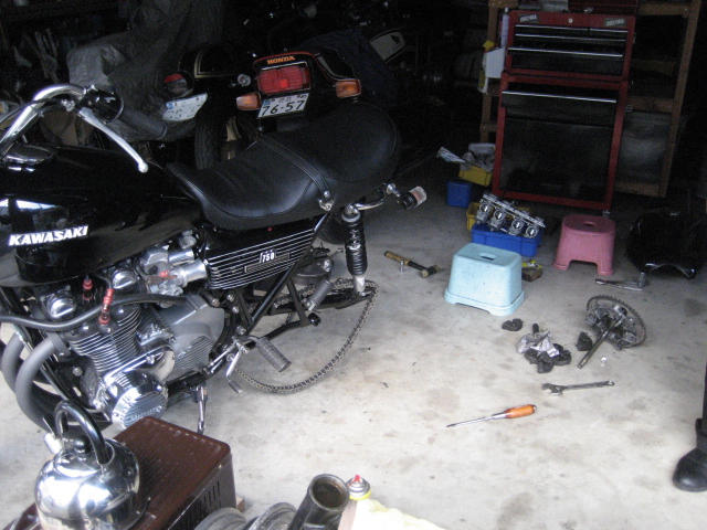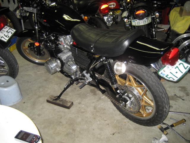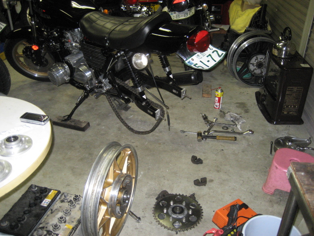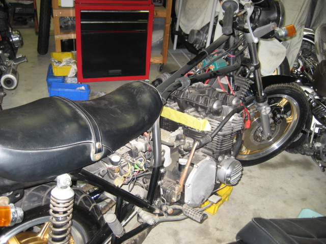 悩んでいても仕方ないので、取合えずエンジンを載せ、キャブのOH・ハーネスの設置・マフラー取付という手順で進めた。