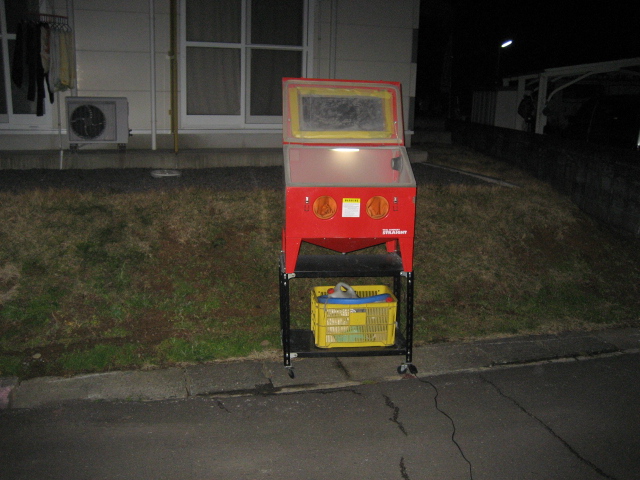ボディーをブラスト作業へ。 初めに、リバーで剥離してあったので、作業は楽だった。 明日にでも塗装することにする。 (一台分は、うちの副隊長が首を長くして待っているので、早くしないと!)