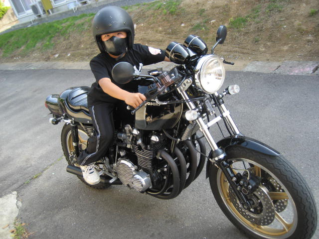 単車に乗りスタンバイOK!! このスタイルがカッコイイらしい!