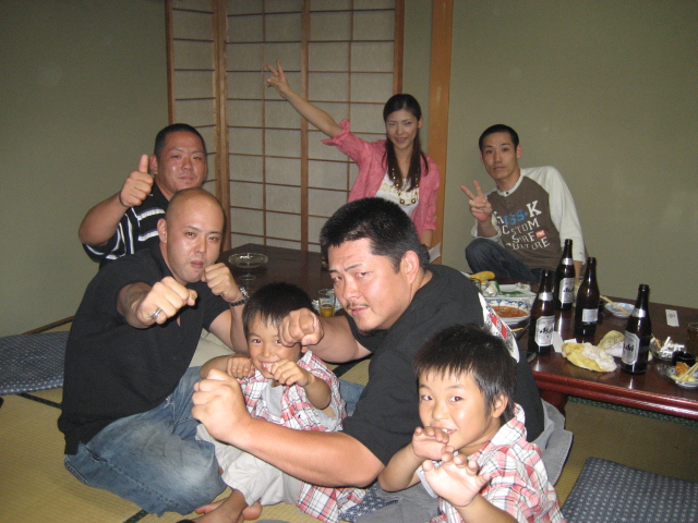 一部の連員です。 ちなみに、私の両端にいる子供は、極真空手の達人です。兄の方は、西日本3位。弟は1位。今は勝てるが、何年か先には、私もボコボコにやられるだろう!