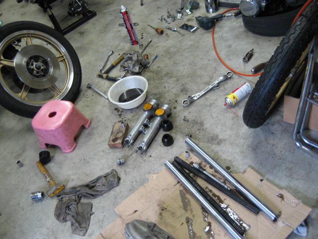 次にフロントを組もうとしたが、ホークからオイルが少し出ているので、この際交換する!