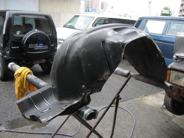 今日はインナーフェンダーを磨き塗装するぞ!!