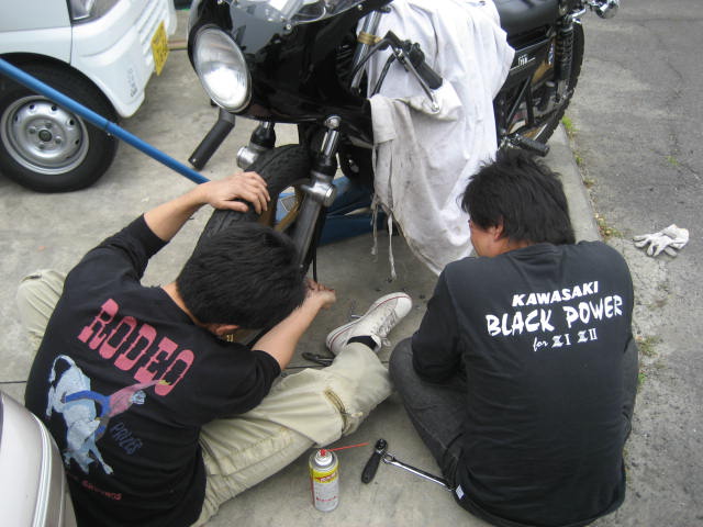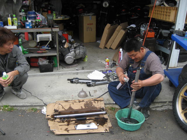 作業予定は、オイル交換・・これは問題無いが・・・フロントホークのOHもしたいらしい・・・。