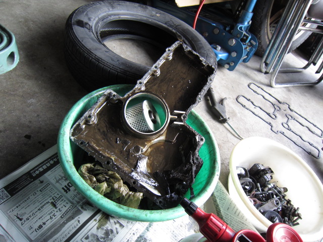 けど・・・オイルパンを外すと、この通りかなり汚れている・・・