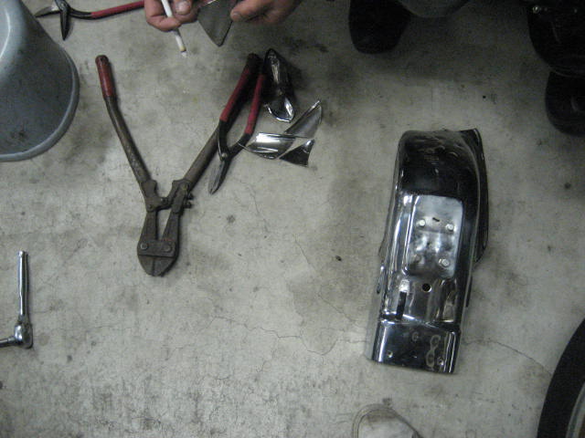 一段落付いたので、大将恒例のハサミ技で、リアフェンダーをカット!!