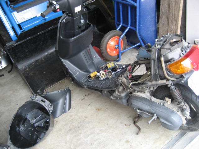 5月26日(火)上司の自宅へ約8年間放置してあった原付の復活を依頼されてのだが・・・、外見は意外にきれいが、ブレーキも噛み付き動かない。 意外にヤッカイだ。