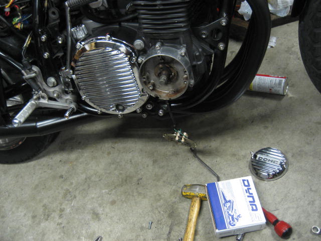 5月11日(月)この間キャブを分解し、魔法の液に漬け、調整を再度取り直したが、まだ納得がいかないようなので、今回ポイントよりフルトラへ交換!