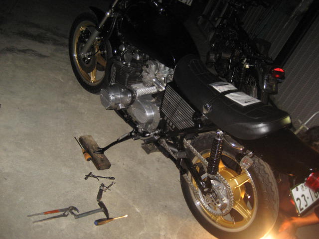 6月11日(木)チェーンのカシメ道具を借りてきて、最終段階の仕上げに入る副長川端・・・。