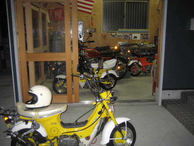 黄色のシャリーは私のシャリーで、後ろに見えるのが、組合長のガレージだ!!
