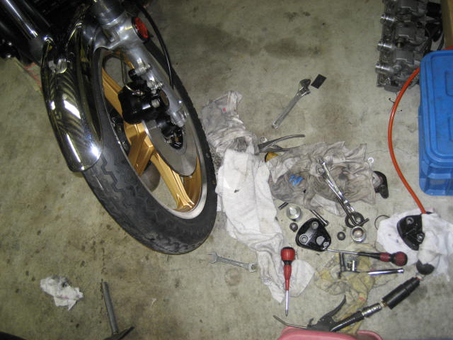 最終点検をすると、キャリパーをOHしたにもかかわらず、オイル漏れをしている・・・・。