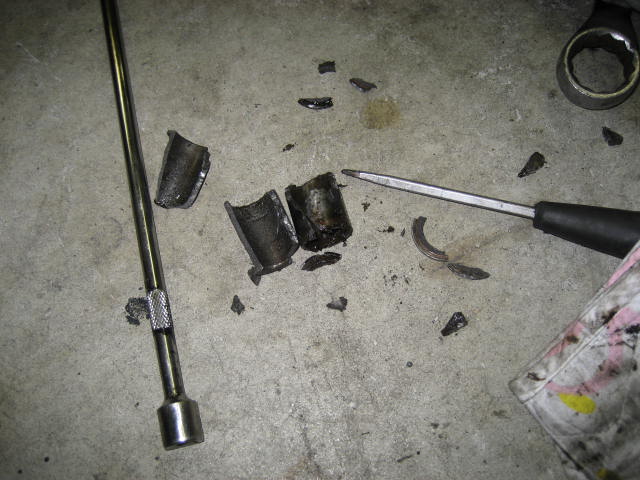 古いブッシュが焼付き、破壊する事にした。(破壊と格闘時間約1時間)