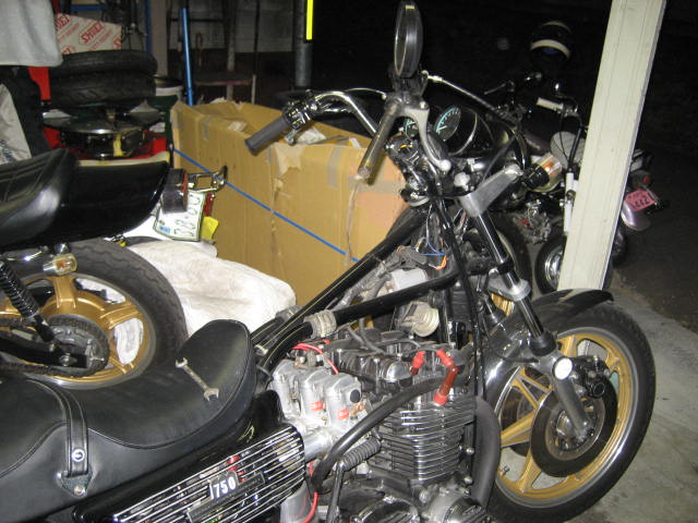 この後、バックステップの交換をし、ブレーキの調整をしていると、コトコト言う音がするので調べてみると、スイングアームのブッシュがガタガタだ! 在庫が無い為今日はここまで! 明日に完成さす予定。