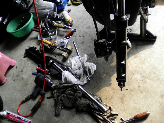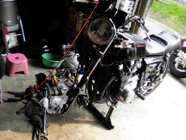 ネジは奥で折れ込んでいる為、地元も加工所までエンジンを運び、今日中に作業して欲しいと依頼し帰って来て、次はZ1000MK2の点検だが、キャリパーからオイルが出ているということでシール等も用意してのだが、キャリパーではなく、ホークシールからオイルが出ている・・・・仕方ないので、急遽左右シール交換する事に。