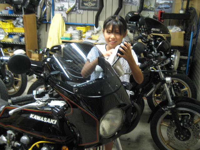 曇っているミラーを、娘が拭いてくれている・・・・良い子だ!