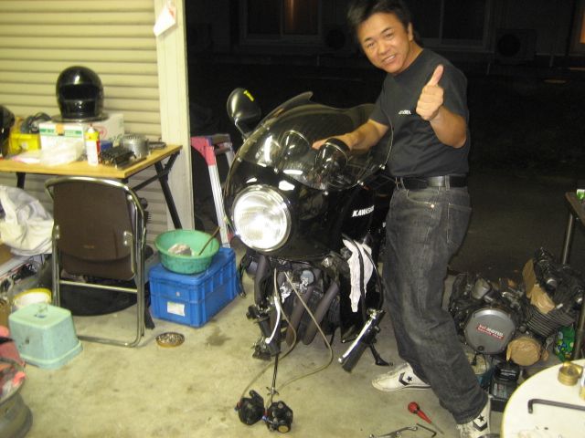 すでに、ステムベアリングも交換済み、ホイールベアリングも異常無かったので、グリスアップをし、増締めをして様子を見ることに・・・。