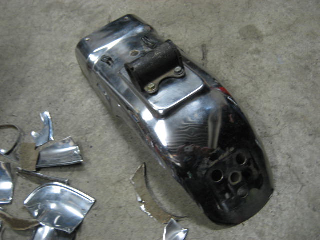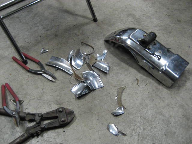 火の玉の持ち主に、リアフェンダーの加工を依頼されたので、またまたハサミで、