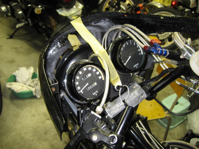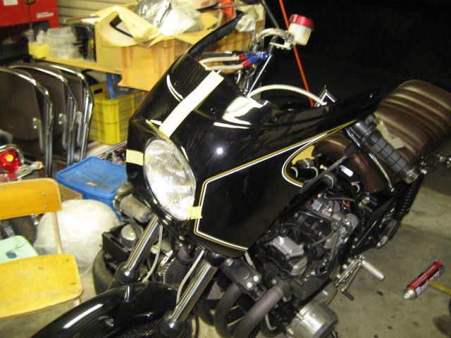 5月19日(火)MKⅡに、Z1Rのカウルを付けてほしいという事なので、どうにかして付ける事に・・・専用のステーなど無いので、自作ステーを製作し固定!