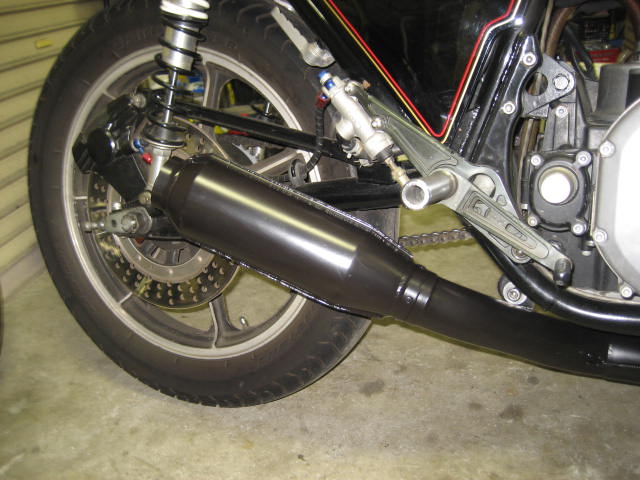 アルミのサイレンサーも黒に!昔のモリワキの鉄モナカみたいな・・・