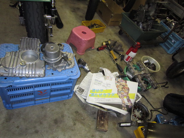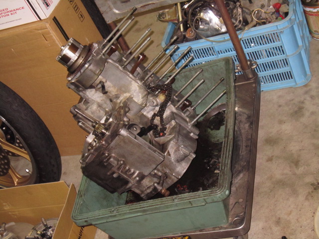 8月15日(月)分解しているZ1エンジンの内部洗浄。
