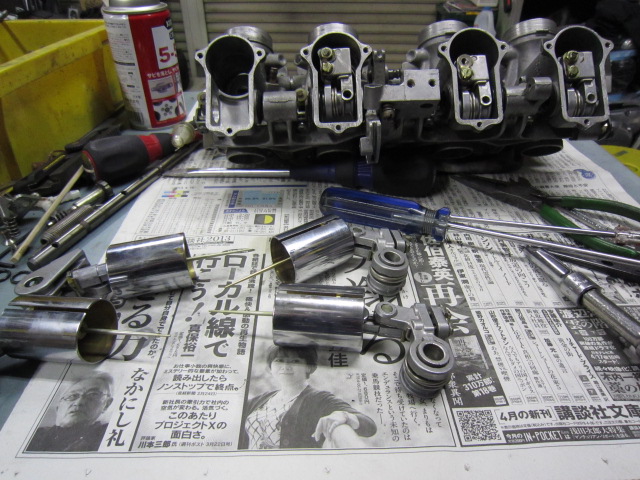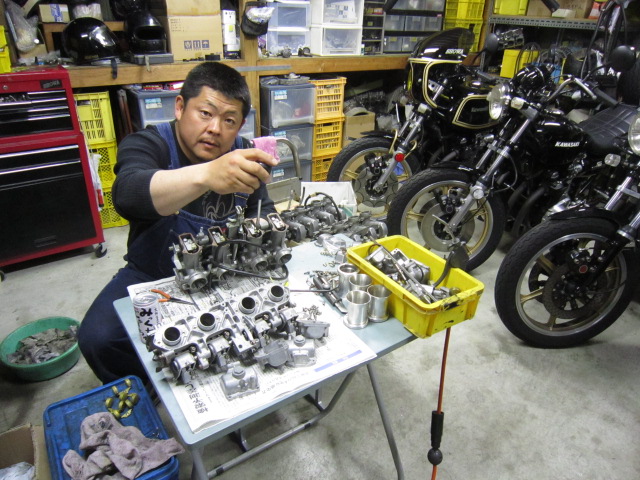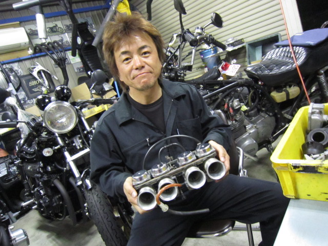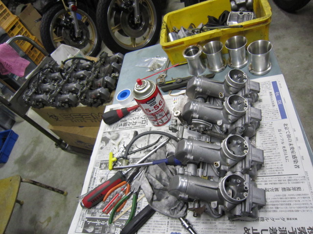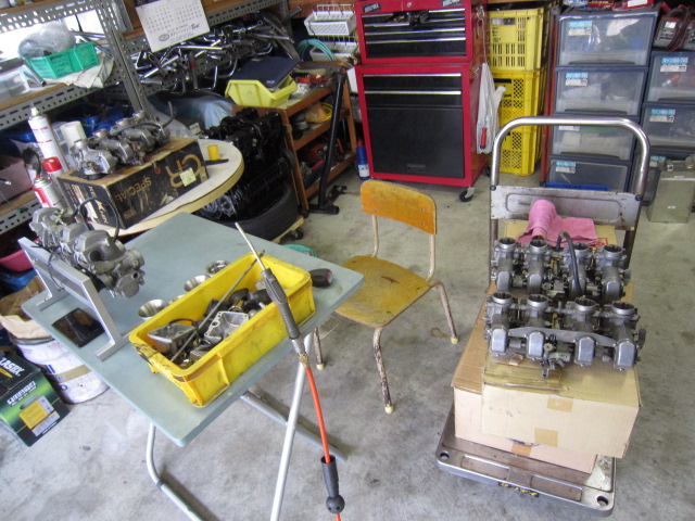 作業します・・・が、管理人が遊びに来たと思いきや、こいつもキャブをさげて来てるじゃないか!!!