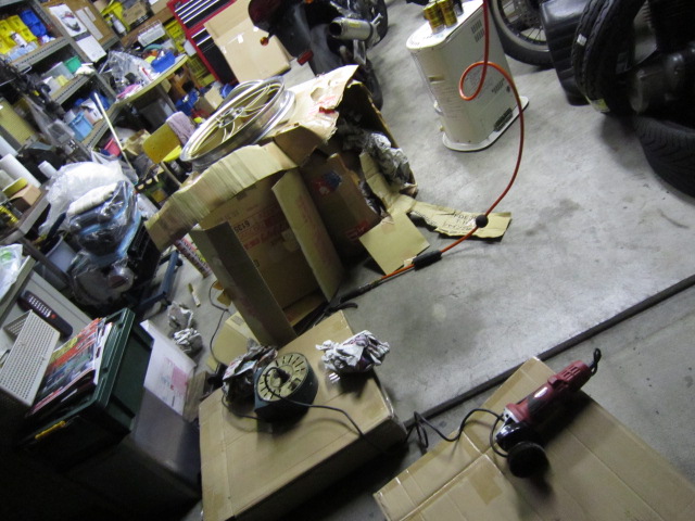 本日私のガレージに届いたので、表面処理やリム内の処理をし、塗装する為にマスキングすることにします。