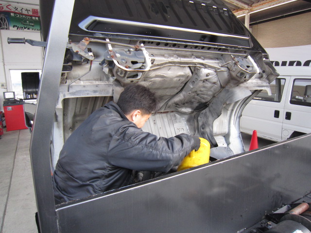 平野君はまじめに仕事しています・・・・・っといっても、私の車のメンテナンスですけど・・・。