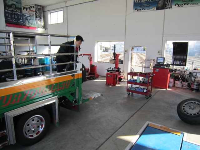 12月26日(水)大掃除のため廃タイヤ&オイルの空き缶を引き取りしてもらうため、メンバー平野君のところに!