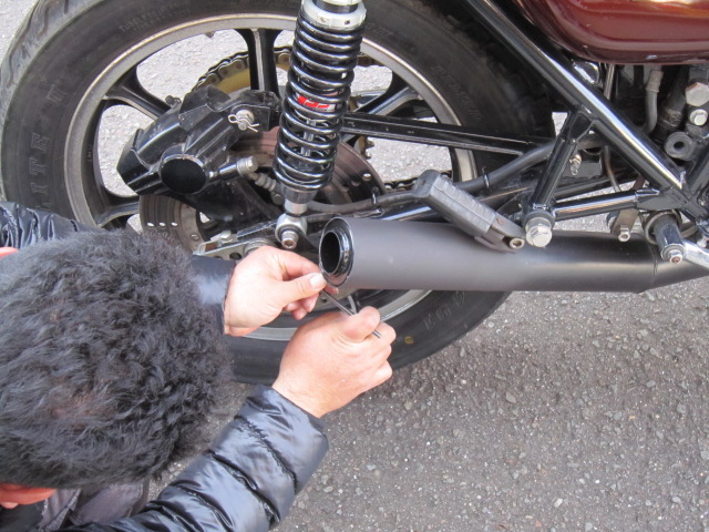出張から帰るとタイミング良く、先日MKを買った同級生がサイレンサーを交換にやって来た。