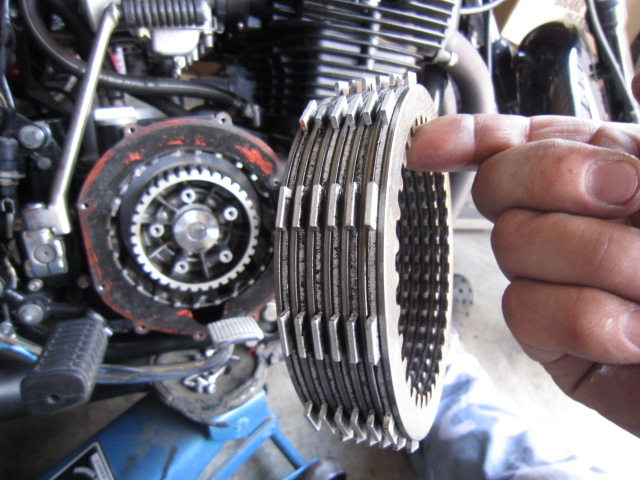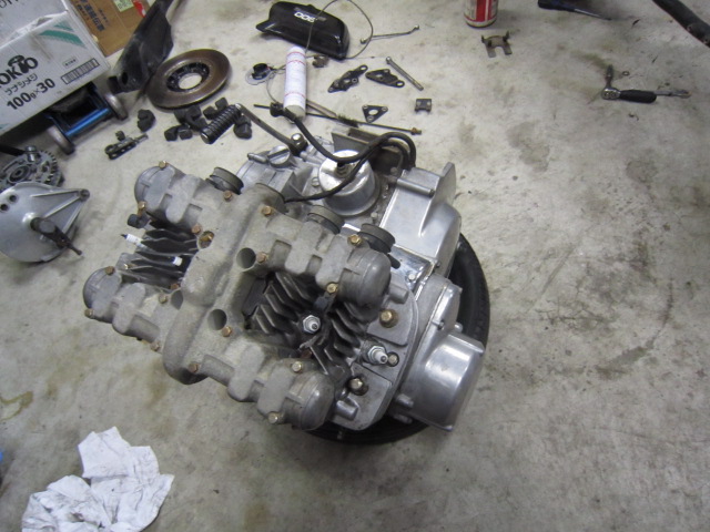 エンジンは始動し調子良さそうなんですが、どぉーもクラッチが張り付いているようです。 何度か張り付きを復活さそうとエンジンを掛けチェンジを入れ挑戦しましたが駄目でした。 分解します。