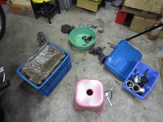 まずは最近ガレージに入ってきたMK2のキャブを分解し、魔法の液に漬け込んでおきます。