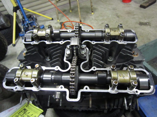 シムが飛び出てカムに食い込みカムチェンもズレたせいか、残念ながらバルブはすべてピストンにキス