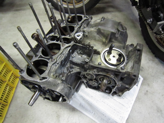 またまた続いて、製作待ちしているエンジン(50年 101※※)のクランクケースのGK剥ぎもやっておきます。