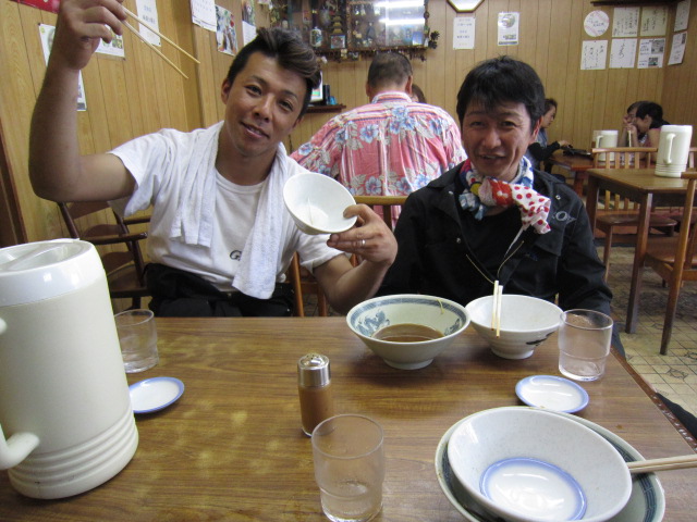 私の近所の徳島ラーメン(私の一番のお気に入り 名東軒)をご馳走したのですが、食べ終わった後に気づきました・・・・