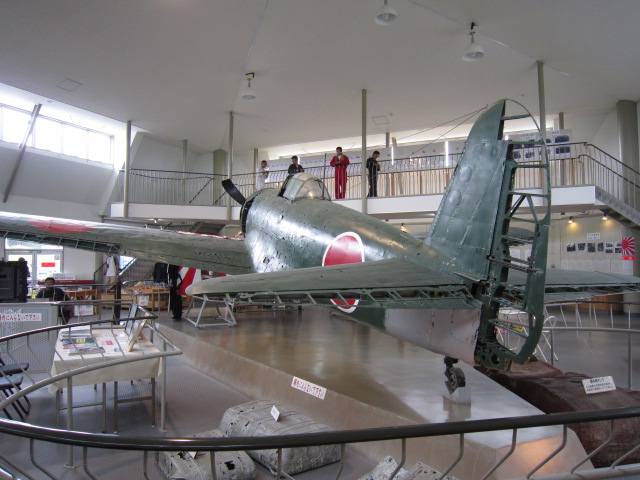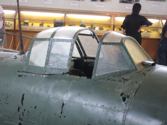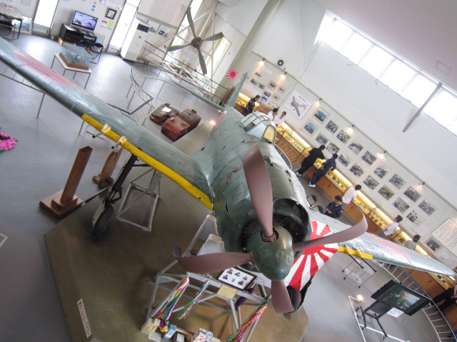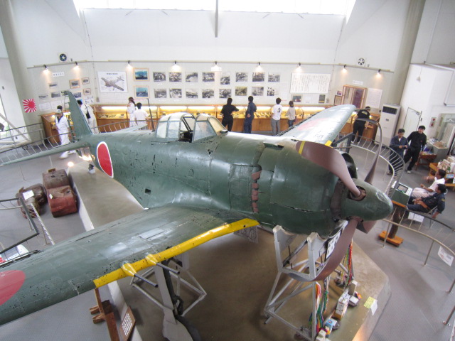なんと高知の沖に沈んでいたこの戦闘機(紫電改)を引き上げ、ここに展示してあるじゃないですか!