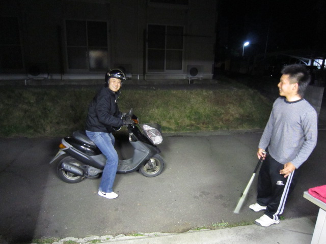 その晩、代車のジョグに乗って帰っていた平野君が来たよ!
