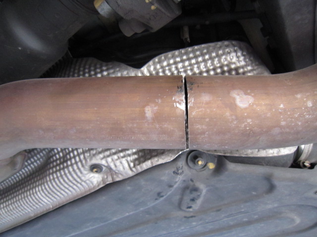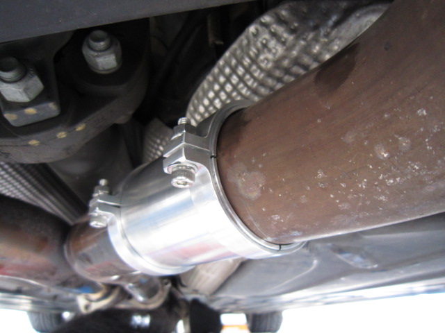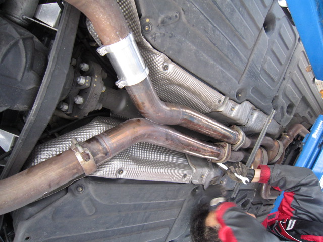 そして、上側のパイプを切断・・・なんだかAMGのマフラーを切るのはちょっと気が引ける~