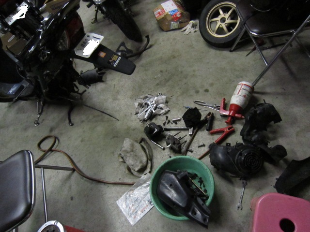 原付が単純だけど、カバー類を取り外す作業が非常に手間かかる・・・・・。