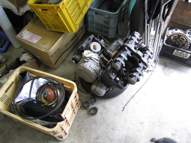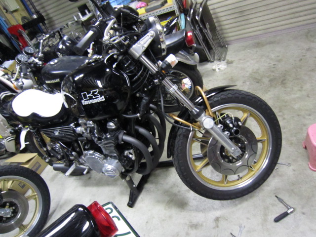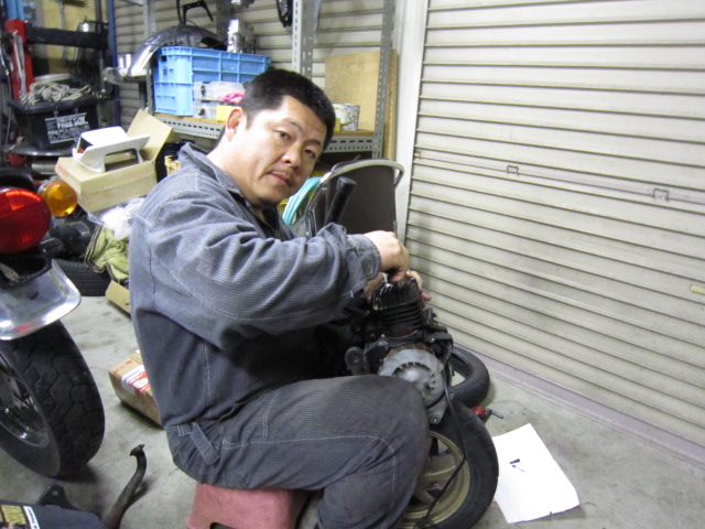 信号で止まっていたらいきなりエンジンが止まったらしく、キックを100回ぐらい踏んだけどかからないということで、ガレージINしてきた。
