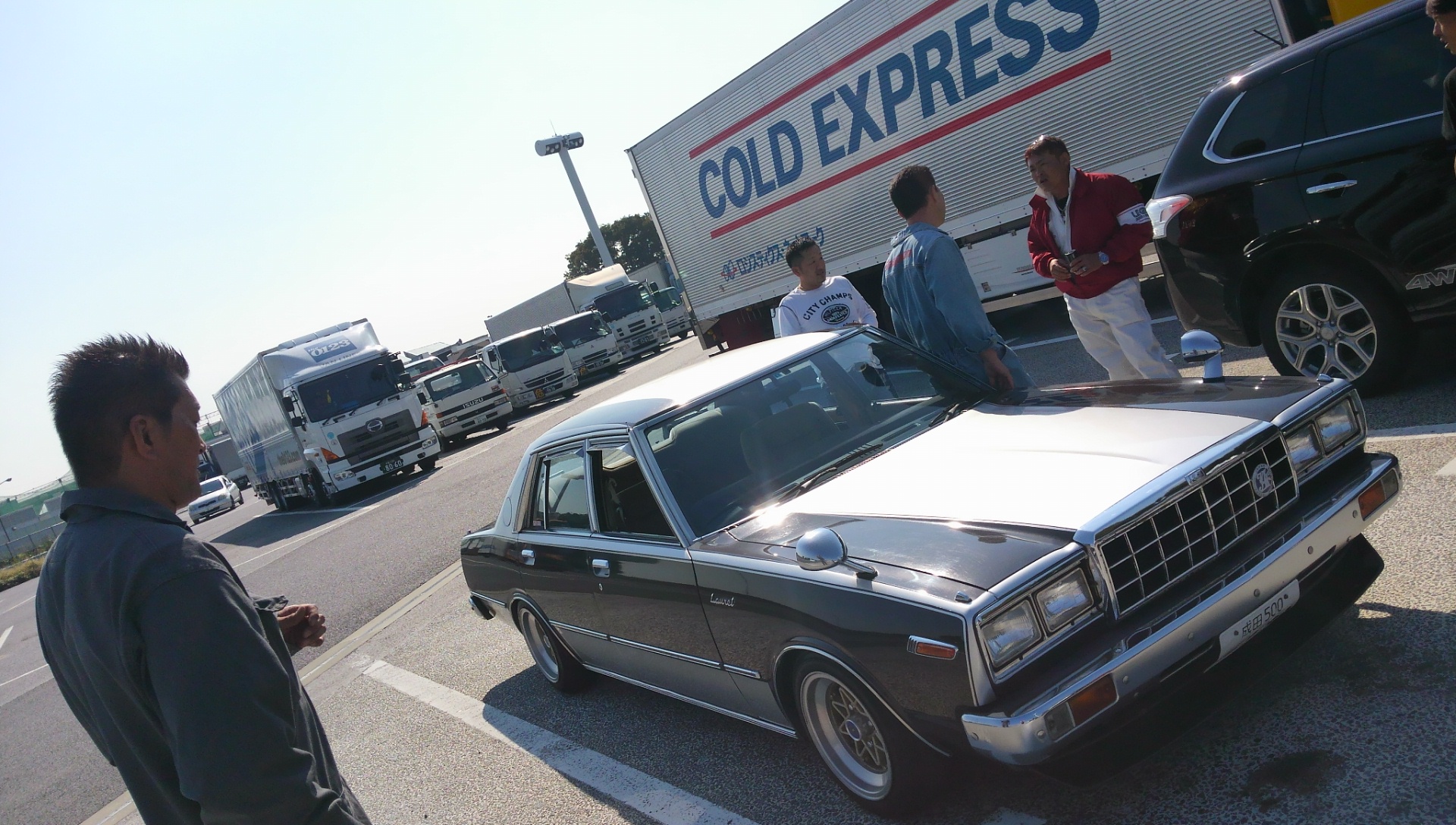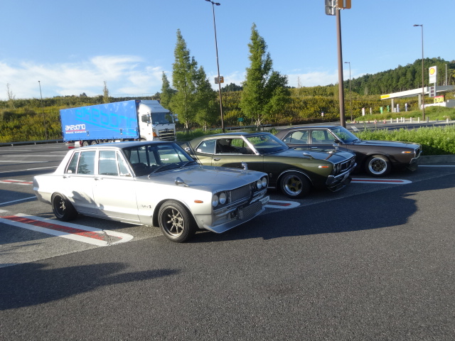 東名高速海老名SAを杉君運転する230ローレルを先頭に出発。