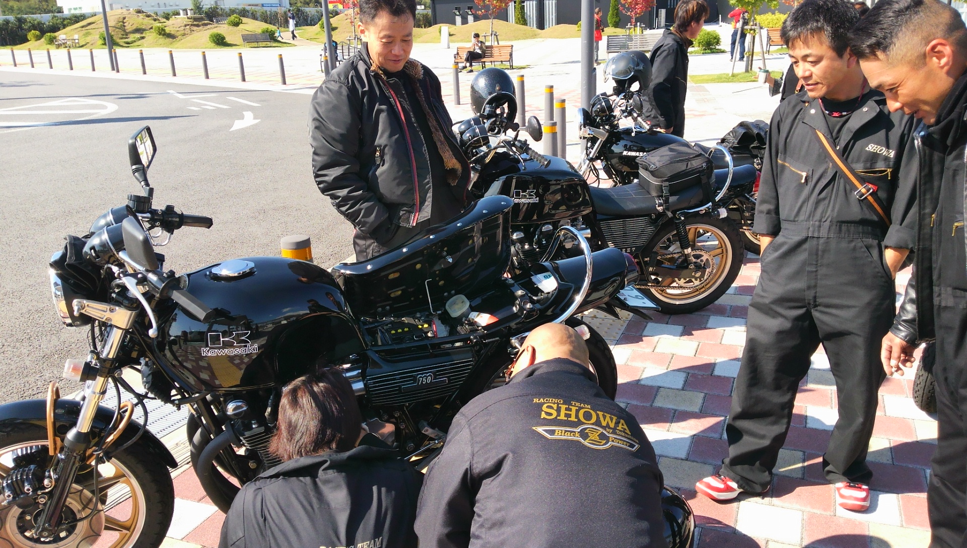 連長はセルモーターカバーのネジが緩み、副長はバックステップのクリップが無くなりましたが、流石です!!みんな手持ちの道具などで対応し難なくクリアーしています。