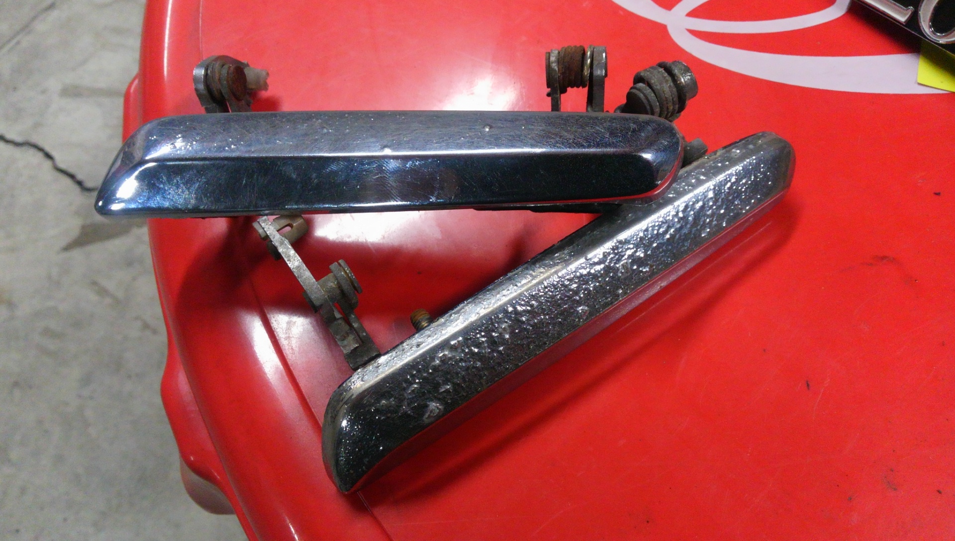 なかなかのメッキの傷み具合に・・・・折れてるのが上・・・