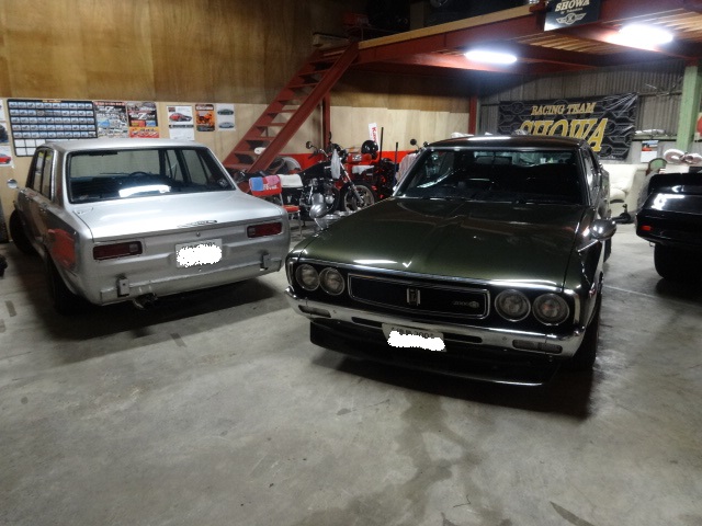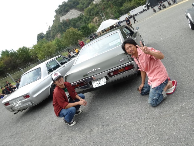 今回、まぁー君と車で参加。まぁー君は私の2号車ハコスカで!