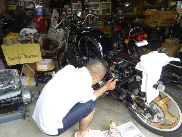 副長が小物パーツを取り付けている間に、私はヤレ48のダイナモを交換しておきます。