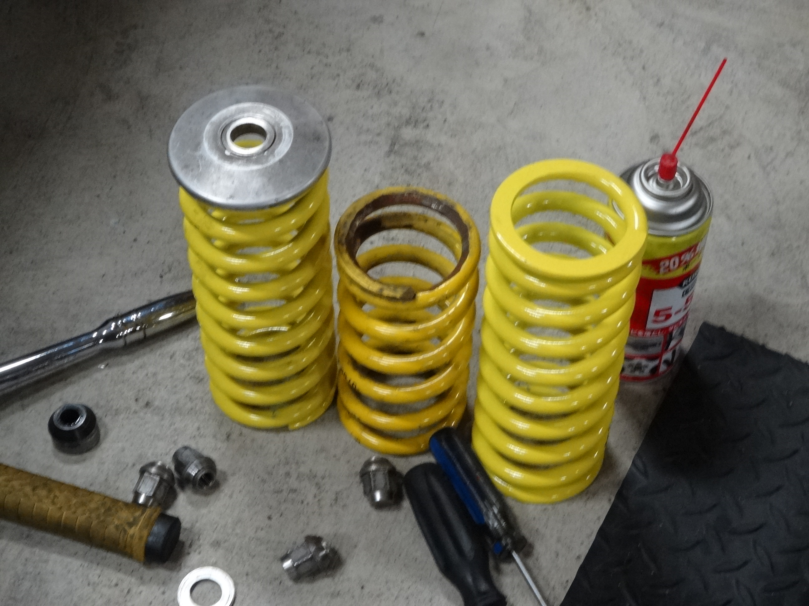 少し長めのサスを購入しましたが、車高を落とそうかと思えば、車高調の調整する範囲を越してしまうので、仕方なく・・・・1と3/4カットして装着しました・・・大丈夫かな???
