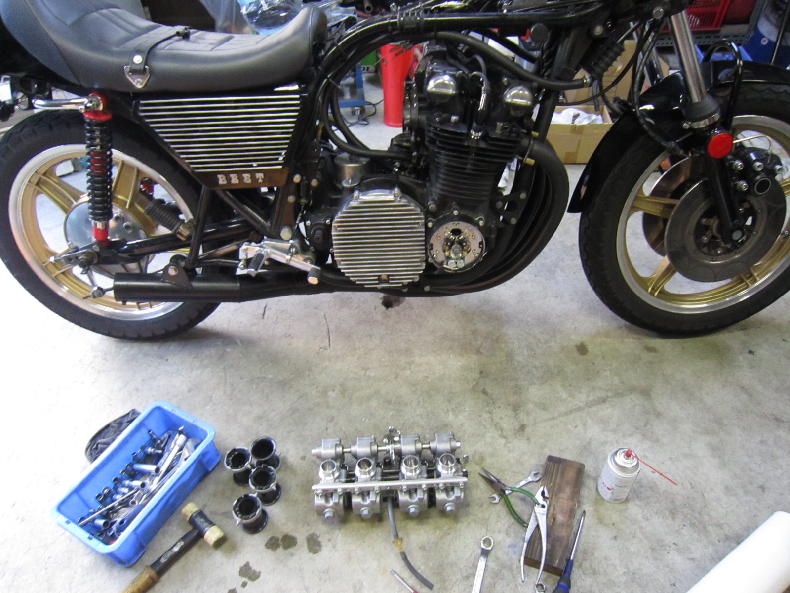 まずは、点火系の調整で入ってきたZ1・・・だが、キャブ(CR29)もバラバラだ・・・(苦笑)