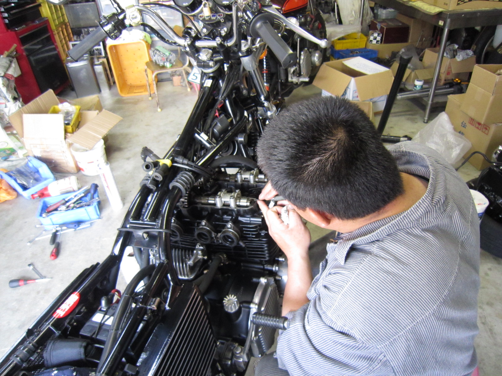 シムと、カムチェーンの音が気になるらしい・・・。